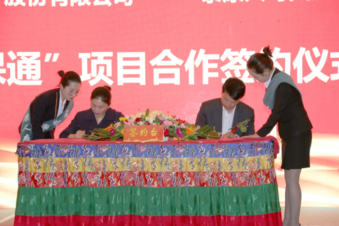 5月25日,西藏阜康醫療與泰康人壽西藏分公司"健保通”項目合作簽約儀式在香格里拉酒店會議廳隆重舉行,西藏保監局秘書長彭飛蹄,西藏阜康醫療黨委書記、董事長王斌,泰康人壽西藏分公司總經理向勉參加會議并發表講話。