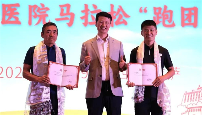 西藏大學附屬阜康醫院常務副院長羅光輝、劉連福,副院長多杰太、李勇、王險峰、馬磊、申琳,院長助理鄧文紅,西藏阜康腫瘤醫院院長助理李麗,西藏阜康醫療股份有限公司質量總監權建輝,西藏阜康健康管理有限公司經理楊國洪等領導蒞臨現場,全體報名跑團的團友出席,共同見證了阜康跑團的成立。